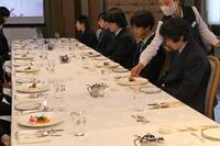 テーブルマナー講習を受け、美味しいコース料理を頂きました。
