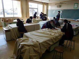 一方、学校に残っている3年生は、朝から奉仕作業に取り組んでくれています。カーテンの補修・洗濯、ワックスがけ、正門の門扉洗い、第2グラウンドの整備等を行っています。明日も奉仕作業の時間が設けられ、校舎内の清掃を行ってくれるそうです。3年生の皆さん、たいへんありがとうございます。