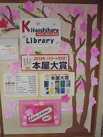 入口の戸には桜が咲き、暖かな天気とともに、図書室にも春が訪れた感じです。