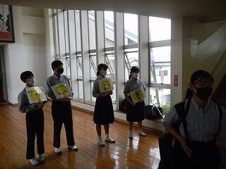 7月6日(火)から19日(月)まで、生徒会が「あいさつ運動」を実施しています。この期間は全クラス全生徒が当番制で行っています。