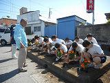 昨日の6月3日(土),鹿沼南高校の高校生とともに本校生徒50数名のボランティアが参加して,大門宿の交差点近くの花壇整備を行いました。