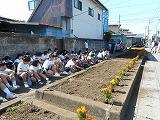 昨日の6月3日(土),鹿沼南高校の高校生とともに本校生徒50数名のボランティアが参加して,大門宿の交差点近くの花壇整備を行いました。