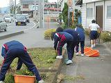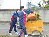 2,3年の生徒が花壇の草花を抜き、11月3日に行われる花壇植栽に備えました。