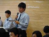 <生徒から「全校給食」の提案があり、それに対し多くの意見が出ました。最後に全校生で校歌を斉唱し、閉会しました。>