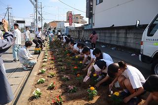 6月1日(土) 北押原中の生徒38名がボランティアとして、鹿沼南高等学校の先生と生徒の皆さん、及び北押原地区青少年育成市民会議の方々の御指導、御協力のもと、大門宿交差点にある花壇の花植活動を行いました。植えた花は鹿沼南高校で育てたベコニアとマリーゴールドです。花色は美しく、葉っぱも青々とした丈夫そうな立派な苗で、さすがだなと感じました。