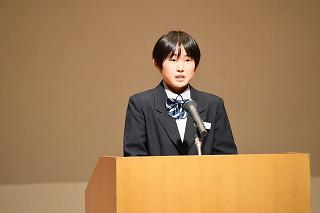 その後、「生徒会新旧役員交代式」が行われました。新生徒会長より旧役員に感謝状が授与され、旧役員から退任の挨拶をもらいました。続いて任命式に移行し、任命書を手にした新役員一人一人が所信表明をしました。