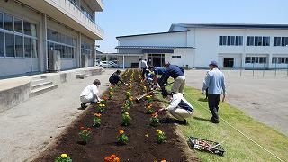 今週は月曜日から木曜日まで分散登校日でした。そして今日は職員会議を行った後、月曜日から生徒を迎える環境整備に全職員で取り組みました。例年ならば生徒たちが委員会活動で行う花壇の花植えですが、今年度は時間の確保が難しいため、職員の手で行いました。しばらく使われていなかった体育館の清掃も行いました。