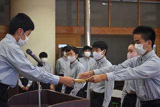 まずはじめに、新生徒会長が旧役員に感謝状を手渡しました。