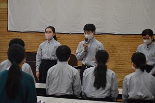 旧役員の6名が一人ずつあいさつをしました。全員が今の自分の気持ちや願いを語り、新役員に対する期待感も込められた立派なスピーチでした。