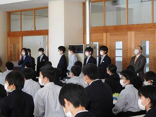 全校生徒の前での「交代式」とはなりませんでしたが、本校の全教職員が参列、先生方が見守る中での「交代式」は、「学校の主役は生徒会である」という雰囲気が醸し出され、これはこれでとても良いシチュエーションだと感じました。