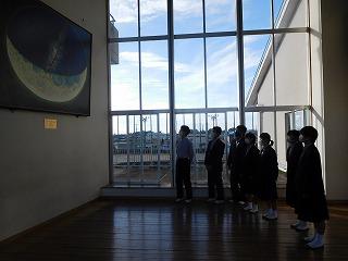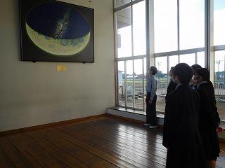 校舎2階のホールに設置されたこの絵画「ツキノウラガワまたは宇宙卵」は、生徒達の限りない未来への願いが込められています。御来校の際はぜひ御覧ください。