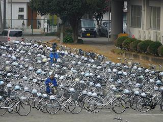 11月26日(木) 自転車・軽自動車商業組合の御協力により、通学用自転車の安全点検を実施しました。徒歩通学者も、部活動等で使用する自転車に乗って登校しましたので、校庭には300台以上の自転車が並べられました。自転車店の方には、ライト、ブレーキ、タイヤ、チェーンをはじめ、細部にわたり点検をしていただきました。