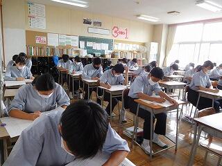 6月25日(金)3年生の実力テストが行われています。定期テストの3日後の実施で、生徒にとってはハードな日程になってしまいましたが、夏休みの3者懇談において、前回と今回のテスト結果をふまえ、進路選択・進路実現に向けた具体的な懇談になるようにしたいと思うところです。