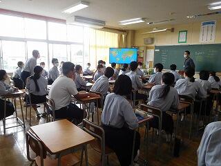 2学期からALTが代わり、昨日よりソル先生が来校しています。出身はアメリカのモンタナ州です。昨日と今日は、本校でのはじめての授業であったため、どのクラスでも、英語で自己紹介する活動を中心に授業を行いました。新たな出会いを大切にし、これからも英語の授業を楽しみながらがんばって取り組んでいきましょう。