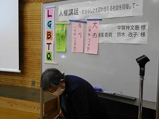 今後も人権週間だけでなく普段の教育活動において人権意識の高揚を図っていきたいと思います。御指導いただきました人権擁護委員の皆様、たいへんありがとうございました。