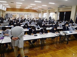 1,2年生は、11月末に実施した期末テストに引き続いての大きなテストです。期末テストや中間テストは、たいてい2ヶ月間程度の学習内容がテスト範囲となりますが、実力テストは、これまでの学習内容全てが範囲となりますので、定期テストと同じような点数をとることはとても難しいことです。思ったよりできなかった(忘れてしまった?)ことに自信をなくしてしまう生徒も多くいます。「できなかった」と思っている生徒の皆さん、ほとんどの生徒がそうですよ。自分の進路目標の再確認とこれまでの学習内容の振り返りを行うことが、今回の実力テストの意義です。テスト結果を今後の学習に生かし、前向きな気持ちを振い立たせてほしいと思います。(テスト結果が戻るまで少し時間がかかります)