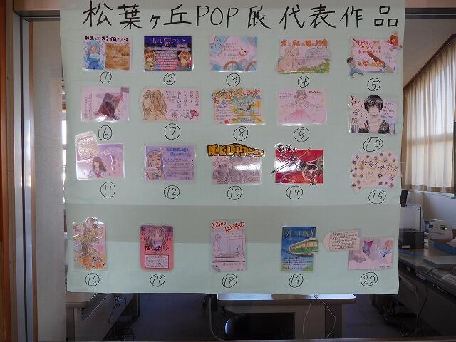 12月2日の松葉祭にも展示されたPOP展ですが、投票の結果、最優秀賞1作品と優秀賞2作品が決まりました。最終選考に残った作品は力作揃いで、創意工夫と努力、アピール度、美術的要素のどれをとってもすばらしく、レベルの高い作品ばかりでした。入賞した生徒は後日、主催した図書委員会より表彰されます。
