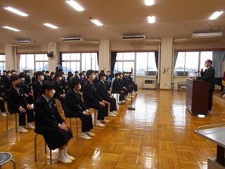 3学期はとても短い学期で、土日祝日を除くと、登校日は3年生はたった40日です。1,2年生も49日しかありません。何もしないであっという間に3学期が過ぎてしまうということもあり得ます。そうならないように、始業式では、「目標をしっかり立てること。そして自分の目標を常に意識して毎日を過ごすこと」等について生徒に話しました。一日一日、一時間一時間を大切にする意識を高めることができれば、将来のより良い生き方につながる意義ある学期になると思います。