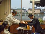 学校長より関口会長に手渡し,役員の皆様と記念撮影を行いました。