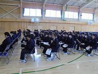 卒業式予行を終えた後、同窓会入会式を行いました。