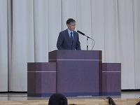 同窓会会長の関口忠雄様より祝辞をいただいた後、副会長の豊田光昭様より“同窓会会則”について