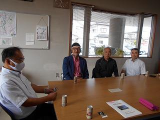 <9月29日(火)、絵画設置の下見のため関口同窓会長と、取り付け工事に携わる木村成浩氏、そして作者の松本功全氏が本校を訪れました。>