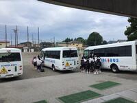 学校で出発式を行い、バスに乗り込みました。