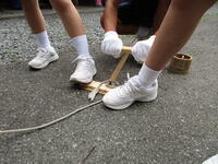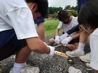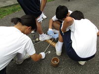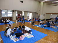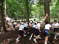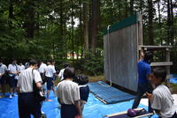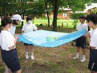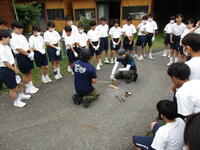 午後は、仲間づくりゲームを行いました。班内の協力、とくにコミュニケーションが大切です。与えられた課題を話し合いを十分に行って取り組んでいました。