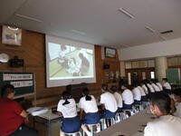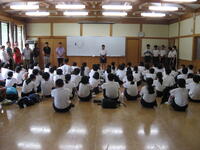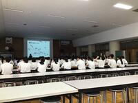 式終了後、生徒会からのお知らせとして生徒会長が、校則の見直し靴の色の件や広島平和記念式典に飾る千羽鶴の完成について話をしました。先生方からは、県大会の応援や夏休みの過ごし方についてお話をしていただきました。