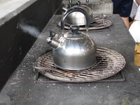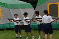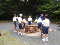 その後、その火を使って「やかんならし」をしました。やかんでお湯を沸かして、お茶会をする予定でしたが、お茶会の時間を十分に取ることができませんでした。その火を使って、飯ごうでご飯をたき、そして、自分たちで用意した、牛丼や親子丼、カレーのレトルトパックを温めて、ご飯にかけて食べました。どの班のご飯が上手に炊けました。また、自分たちでおこした火をランタンの火に取っておき、カレー作りや杉板焼きに使うなど、3日間利用します。