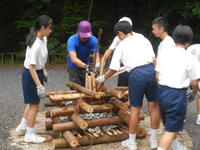 班のメンバーで協力しながら、火種から火をおこしました。