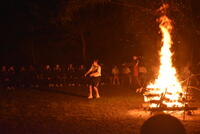 夕食のあとは、キャンプファイヤーです。火の神から3つの誓いの火(絆・希望・友情)をもらい、自然体験学習のまとめをしました。