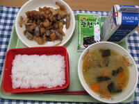 7月2日【火曜日】 塩(エン)ジョイランチ:ご飯、韓国のり、牛乳、チキンチキンごぼう、じゃがいものみそ汁