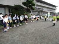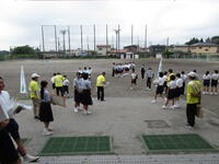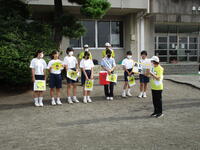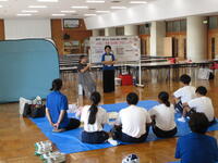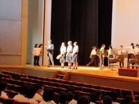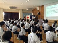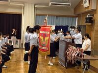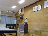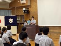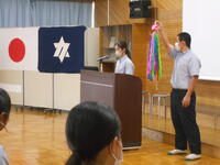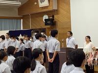 式終了後、生徒会からのお知らせとして生徒会長が、校則の見直し靴の色の件や広島平和記念式典に飾る千羽鶴の完成について話をしました。先生方からは、県大会の応援や夏休みの過ごし方についてお話をしていただきました。