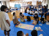 まず、妊婦さんからお話を聞いた後、妊婦体験をしました。また、赤ちゃんの鼓動まで聞かせてもらいました。その後、赤ちゃんを抱っこしたり、遊んだりしました。