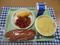 7月3日【水曜日】黒パン、牛乳、オムレツ、ラタトゥユ、コーンポタージュ