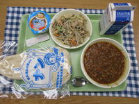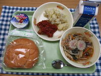 7月8日【月曜日】セルフビビンバ(ご飯、肉炒め、ナムル)、牛乳、冬瓜スープ