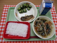 7月1日【月曜日】ご飯、牛乳、アジの塩焼き、磯煮、いなか汁