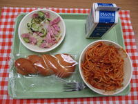 7月12日【金曜日】 牛乳ツイストパン、牛乳、ツナトマトスパゲティ、ハムマリネサラダ