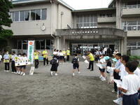 7月17日、鹿沼市更生保護女性会の主催で、社会を明るくする運動「あいさつ運動」が北押原中学校で実施されました。生徒たちの登校時間に合わせ昇降口前で、生徒会執行部・生活委員会のメンバーが、主催者の皆さんと一緒に、元気なあいさつを交わしていました。今回は、鹿沼市長が来校して一緒に活動を行うことができました。