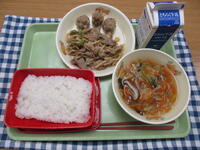 7月16日【火曜日】 ご飯、牛乳、ポークシュウマイ、チンジャオロースー、春雨スープ