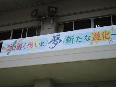本年度の生徒会スローガンは「夢〜受け継ぐ想いと新たな進化〜」に決定しました。生徒たちからの意見やアイデアが形や行動にあらわれてほしいです。活躍を期待しています。