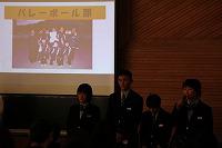 歓迎の合唱の後、中学校生活や部活動についての紹介をしました。