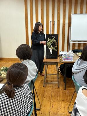 10/31(木)家庭教育学級の第4回学習会が行われました。花のアトリエTamazo様のご指導の下、リースづくりをしました。リースづくりは初めての体験の方が多く、戸惑いながらも自分なりに工夫してリースを作りました。自分で作ったのでそれぞれ思い入れの強い作品に仕上がりました。みなさん素敵なリースができました。