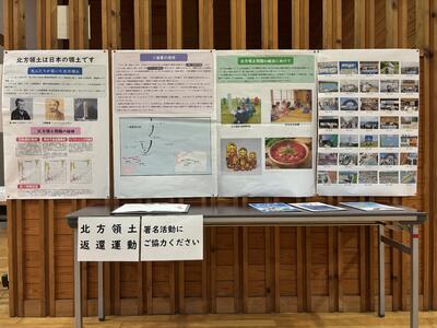 中には、立ち止まって写真や資料を見たり、リーフレットを読んだりする生徒や、北方領土返還運動に署名する生徒もいます。本校の生徒たちの意識の高さがうかがえます。ホームページをご覧のみなさまも、学校にお立ち寄りの際はぜひ掲示物や写真を見学いただけるとうれしいです。