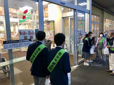 鹿沼市青少年育成市民会議の主催による青少年健全育成推進啓発活動がありました。子どもたちに参加を呼びかけたところ、本校から2名の生徒が参加しました。あいにくの雨模様でしたが、明るくあいさつを交わしながら、商業施設にお見えになったお客様に啓発物質とチラシを配布しました。