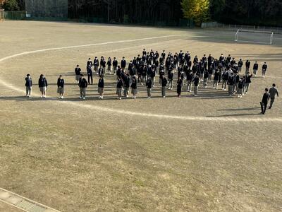 木曜日の6校時に卒業アルバム写真撮影を行いました。3年生全員による「人文字」です。生徒アンケートの結果、写真のような文字になりました。