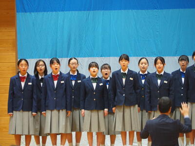 ・2年4組はパートごとに様々な工夫をして練習をしたり、全体で合わせる際にはお互いに良いところを出し合ったりしました。クラスの団結力は2年生で1番だと思います。本番は今までの練習の成果を出し切って、最高の合唱ができるように頑張ろうと思います。