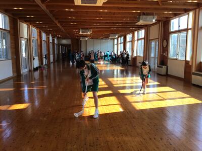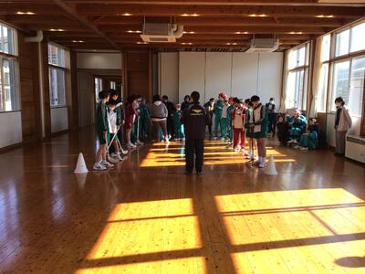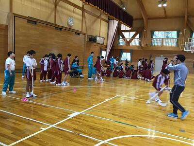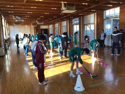 1/15(水) わかくさ学級の子どもたちと富屋特別支援学校鹿沼分校の子どもたちが交流学習を行いました。わかくさ学級と分校中学部の子どもたちで一緒にユニホックに挑戦しました。スティックを使ってのボールさばきの練習、2チームに分かれてのリレーを行いました。それぞれのペースでボールを運んだり、失敗してもめげずに続けたりするなど、多様性あふれる交流会になったと思います。