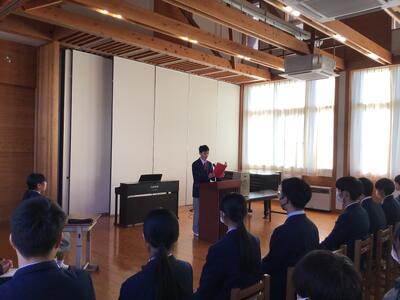 私たちもこれらのことにあやかって、日々の変化や成長を重ね、困難なことに対してもしなやかに対応できる一年になるといいなと思います。You can change yourself and the future.自分と未来は変えられます、と2学期の終業式でお伝えしましたが、3年生は卒業に向けて、2年生は最上級生に向けて、1年生は後輩のよきお手本になれるように、新たな目標を立て、目標に向けて挑戦していってください。